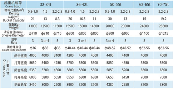 適用于門(mén)機(jī)、卸船機(jī)、行車(chē)上,抓取物料比重為0.6-3.2t/m3的散貨。
